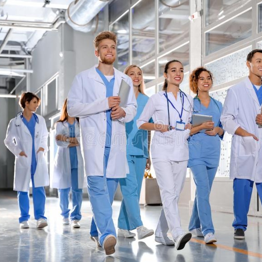 5 gydytojai rezidentai po 6 mėnesius atlikdami rezidentūros studijų ciklus;